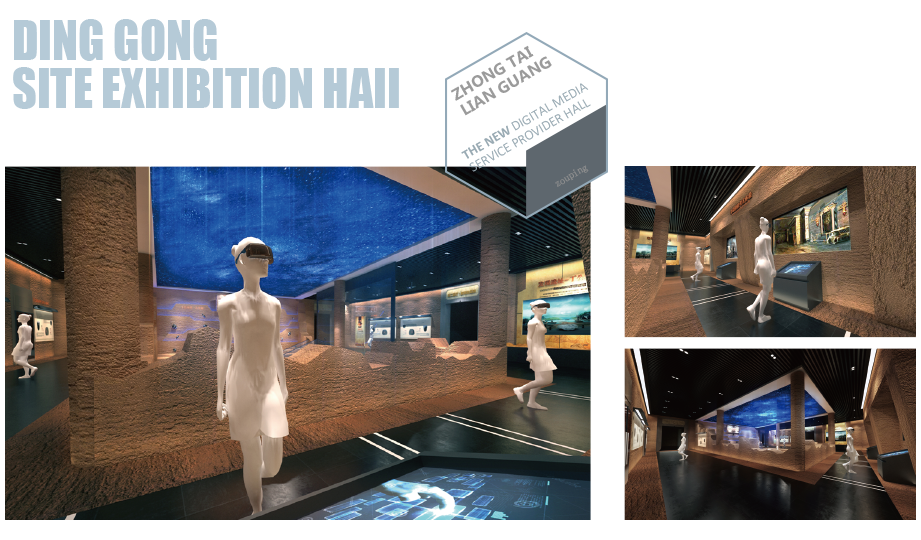The walls of the exhibition area simulate the materials and colors of the profile of the ripe soil, creating an underground atmosphere for archaeological work. Excavation combined with multimedia exhibitions, the information related to Ding Gong Site will be overall displayed; MR simulates realistic multi-source information fusion, interactive 3D dynamic view and physical behavior to immerse users in the environment.
